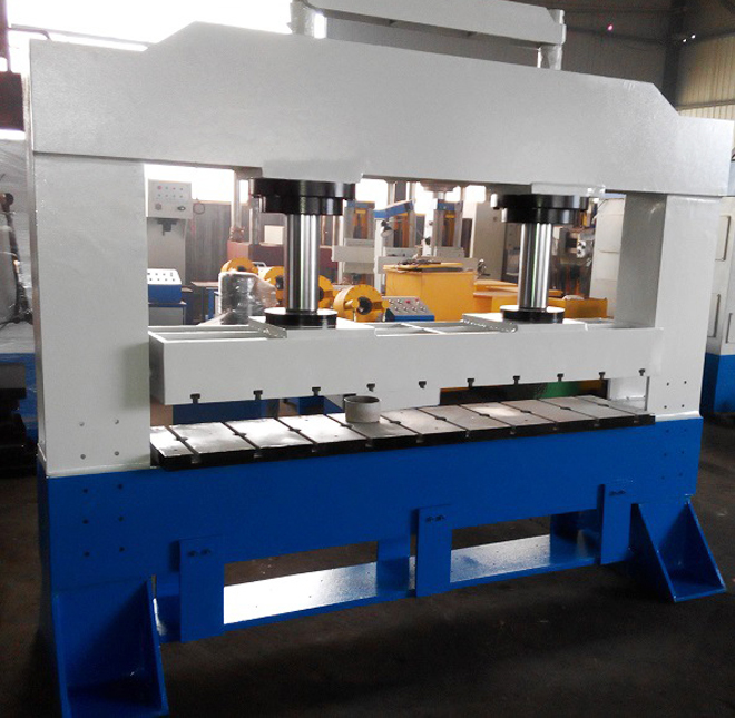 特點: 采用先進的焊接技術,上下活動空間大,便于工件的壓制,可預置工作壓力,可配電子數碼噸位顯示,液壓系統散熱裝置100t雙缸龍門液壓機參數公稱力:1000KN 系統壓力:25Mpa油缸行程:1250mm 開口高度:1250mm工作臺面積:1300mm*1100mm 油缸內徑:160mm*2活塞桿徑:100mm*2 電機功率:7.5kw油泵排量:25ml/r